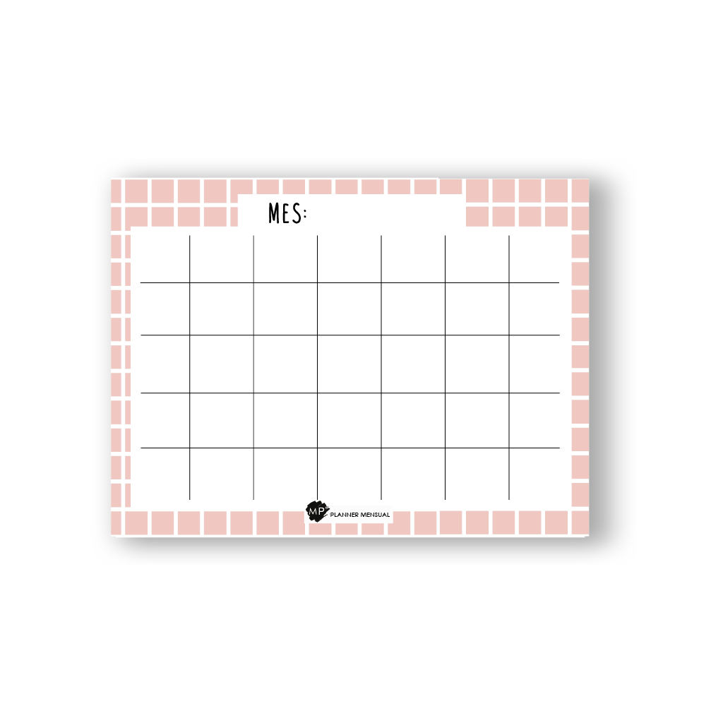 Planificador Mensual Cuadros Coral A4 Borrable con Imán